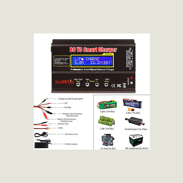 Seven chip B6 V3 Balance Charger 80W 6A RC Battery Charger for LiPo/Li-ion/LiHv/L RC Drone